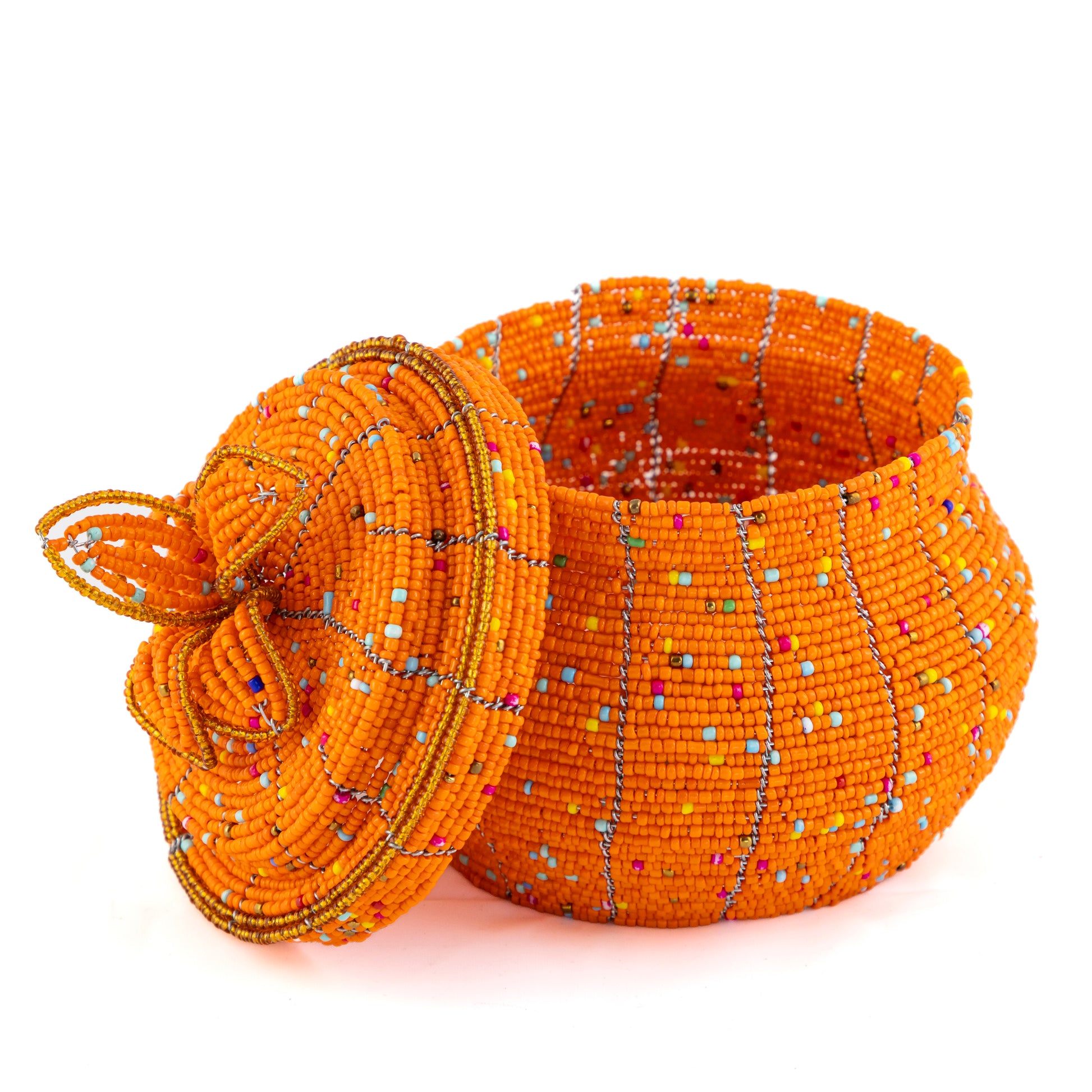 African Beaded Jewellery Box - Orange