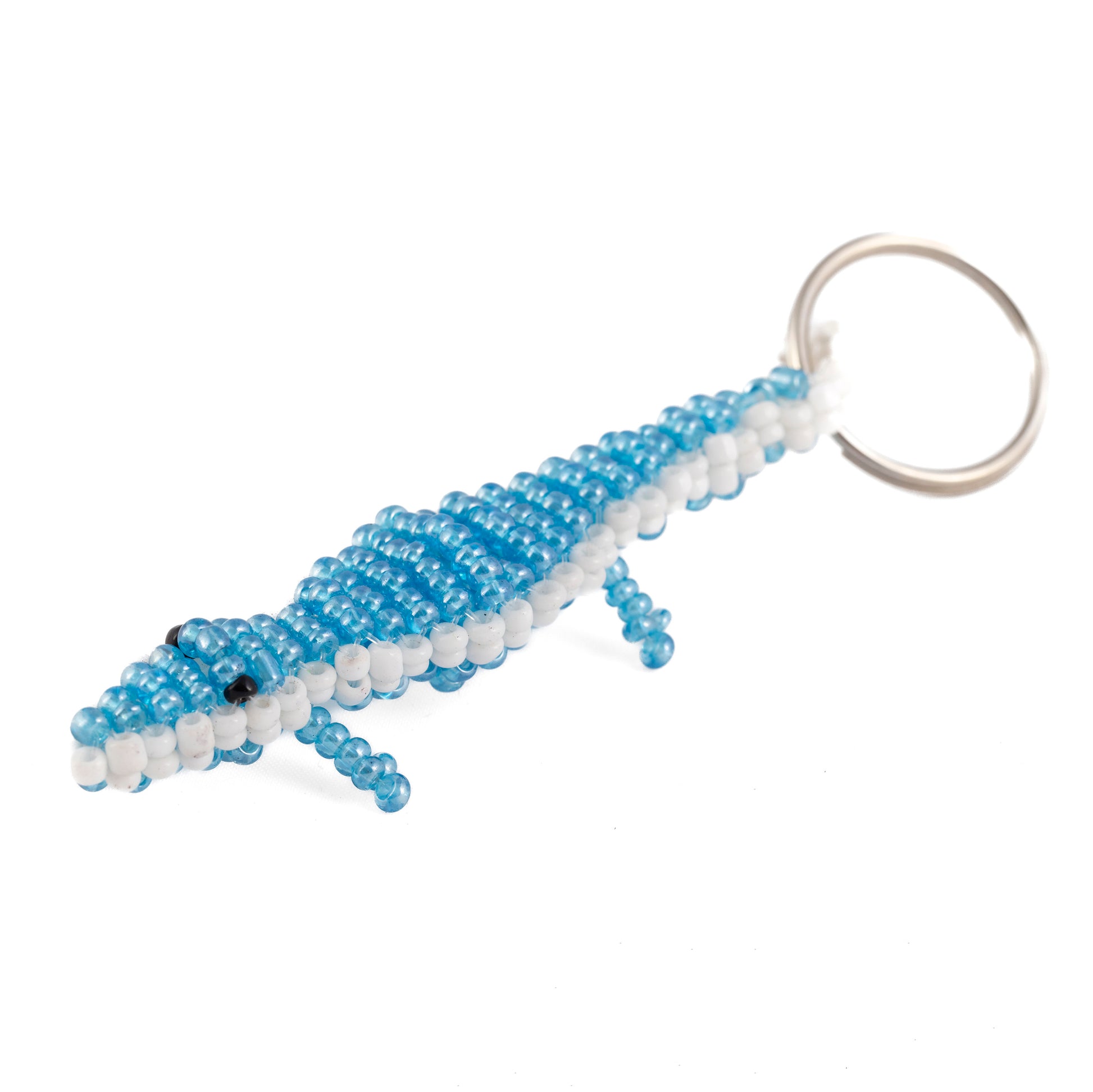 Crocodile Bead and Wire Keyring - Blue