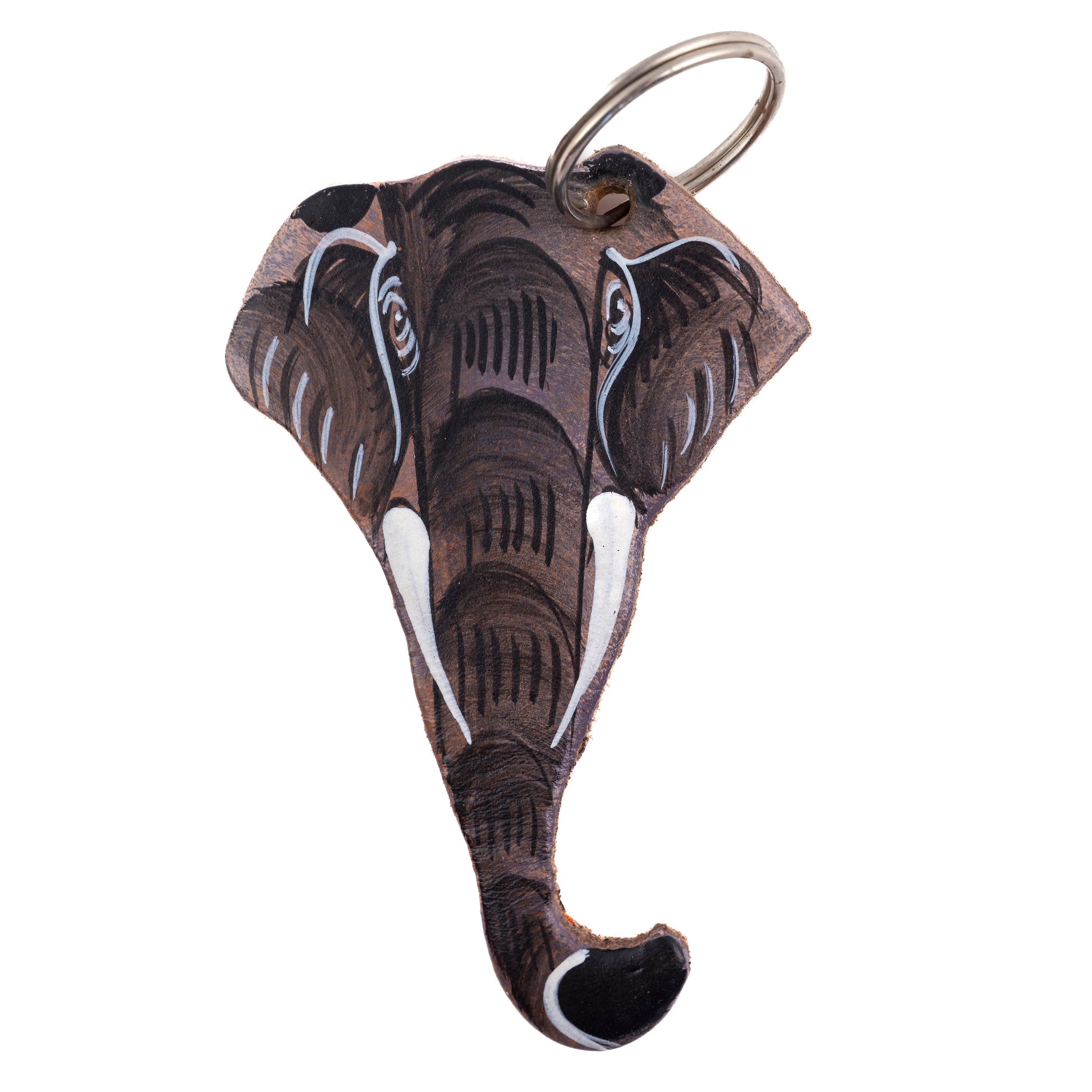 This novelty key ring is handmade in the shape of an elephant's head and is tough and durable. Painted in grey, brown and white our gentle elephants will appeal to all ages.