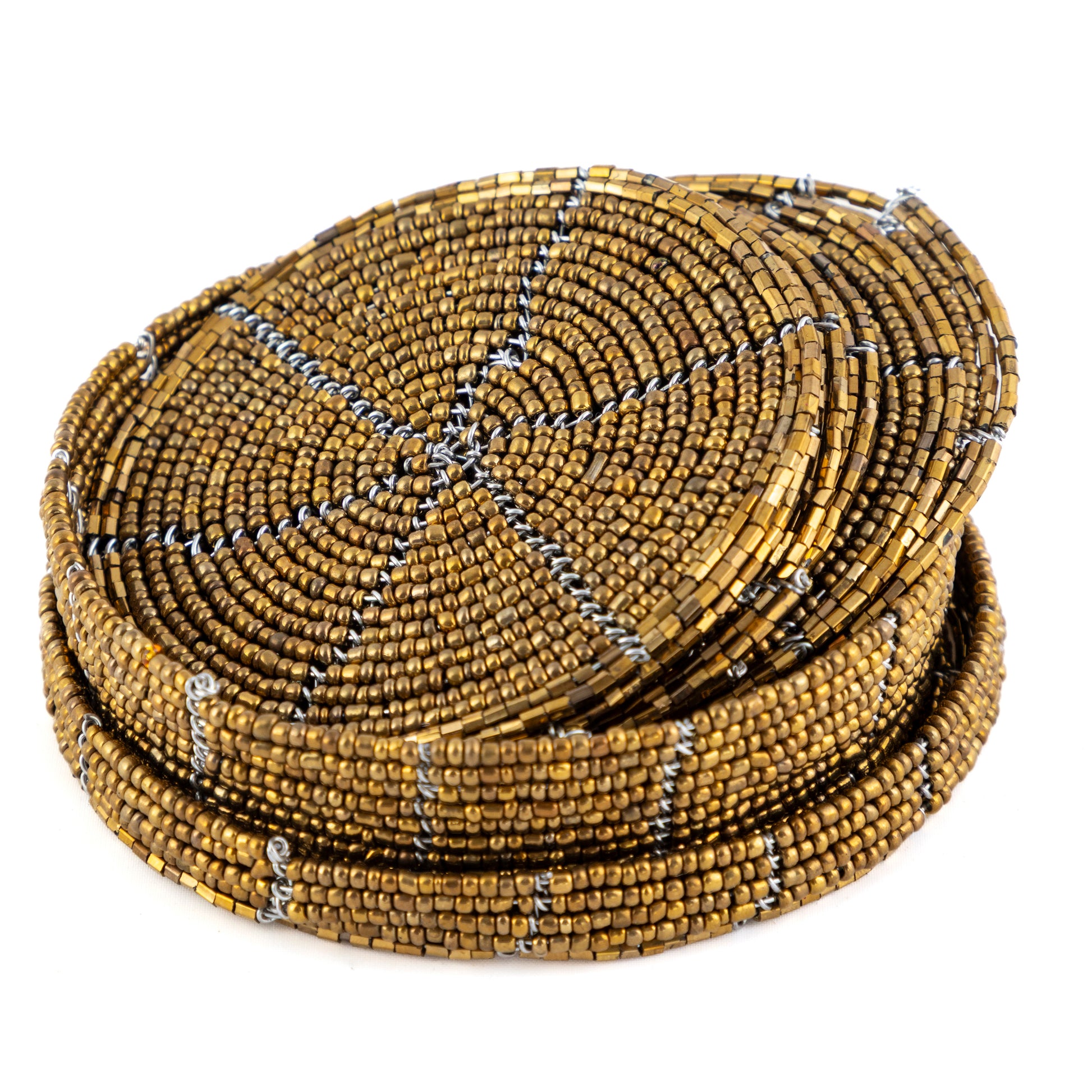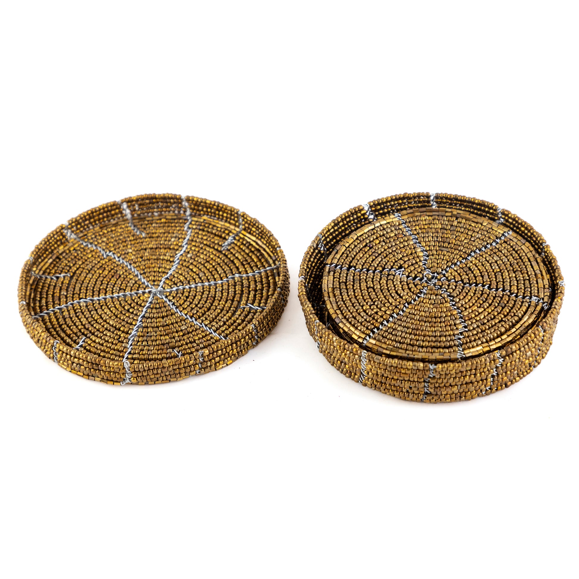These stunning coasters are beautifully made by local craftsmen using tiny metallic beads threaded onto wire. Totally individual they are both useful and decorative adding a splash of illuminating colour to any room.