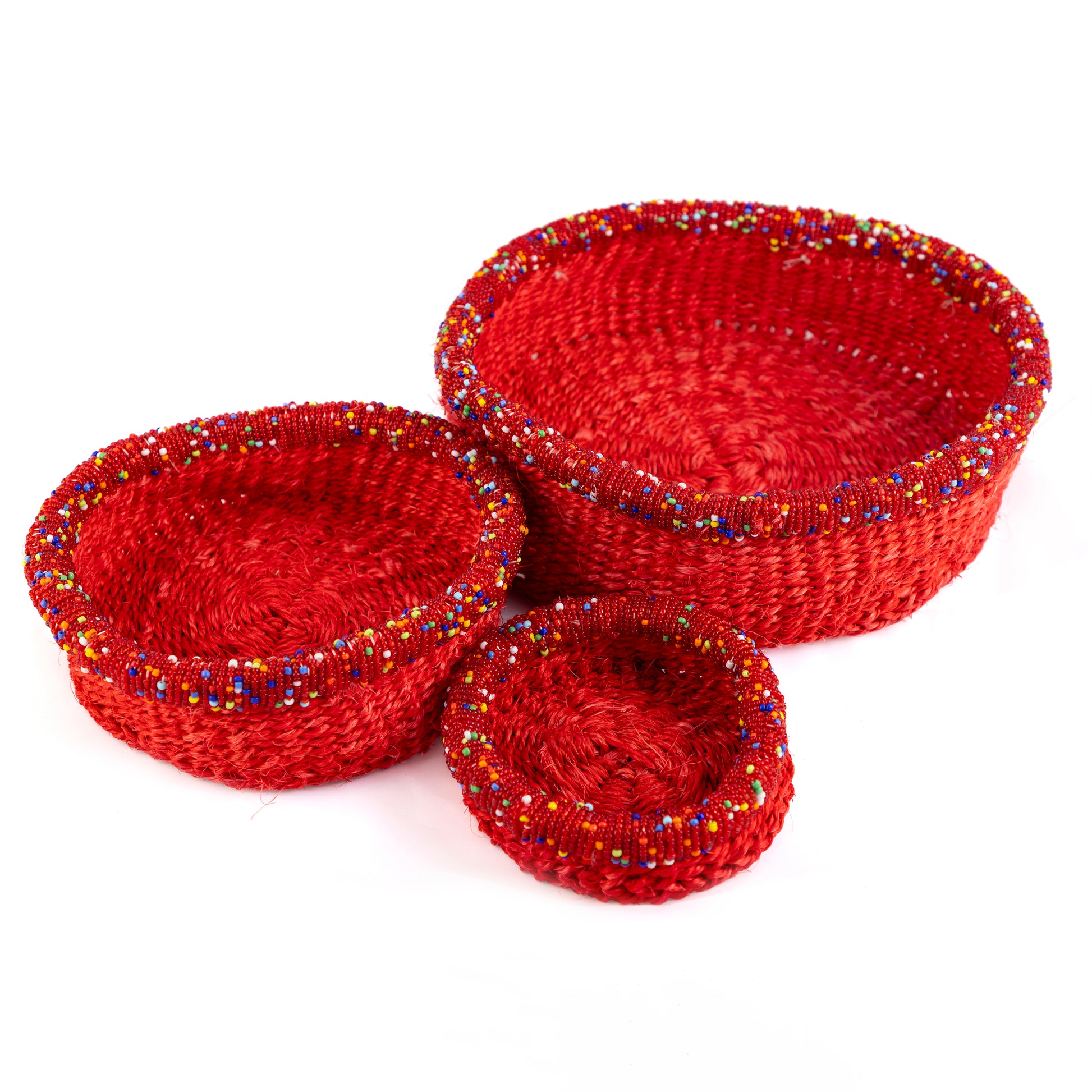 Red Baskets with Bead Trim - Set of 3